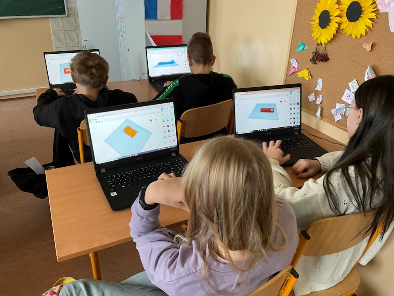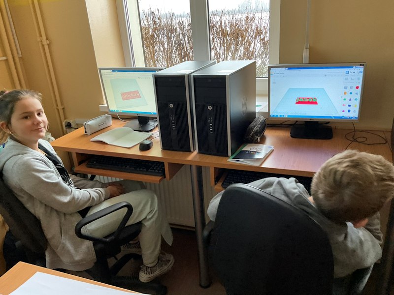 Na lekcjach informatyki uczniowie projektują własne breloki do kluczy w programie TinkerCad. Projekty są wykonywane tak, by nadawały się do druku, gdyż uczniowie znają już ograniczenia druku 3D. W planach jest jeszcze wykonanie etykiet do kluczy do sal. Każda klasa 4- 8 wykona i wydrukuje swój brelok. Wydruki będą wykonane w grudniu.