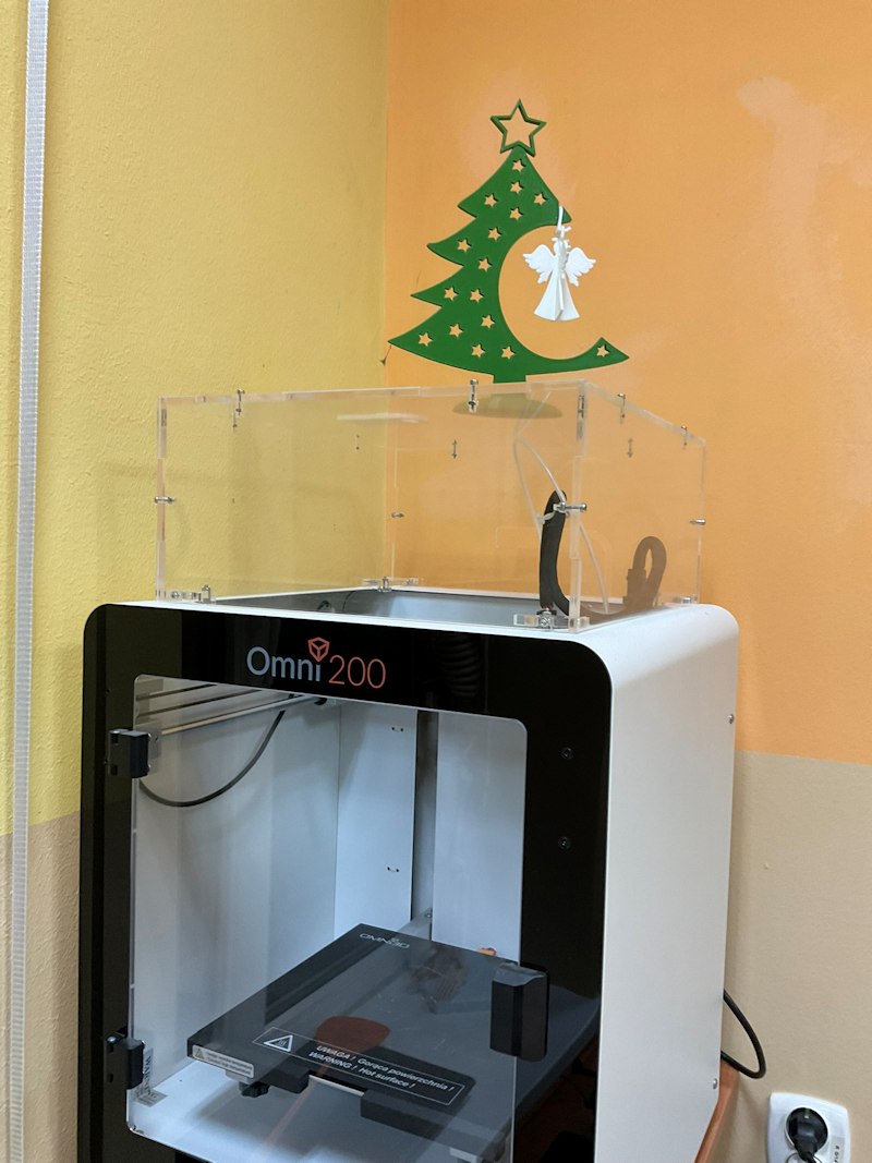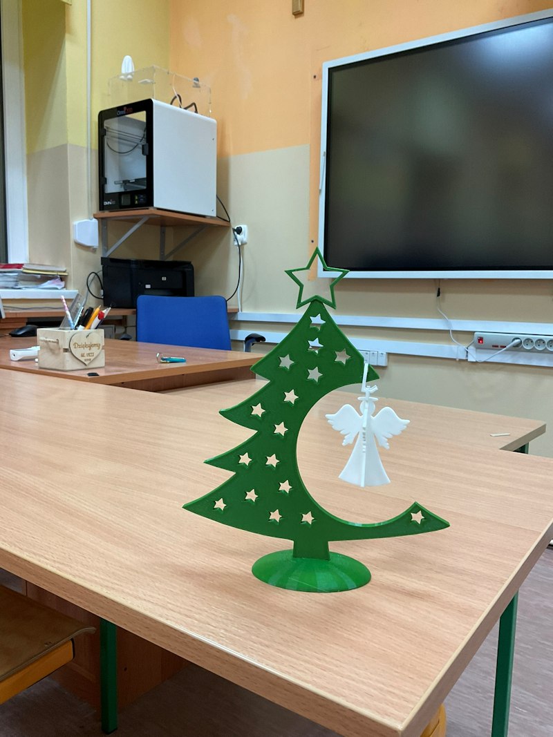 W przedświątecznym okresie nie mogło zabraknąć i... świątecznej ozdoby, która powstała na drukarce 3D. PrzWprowadza świąteczny klimat do pracowni komputerowej.