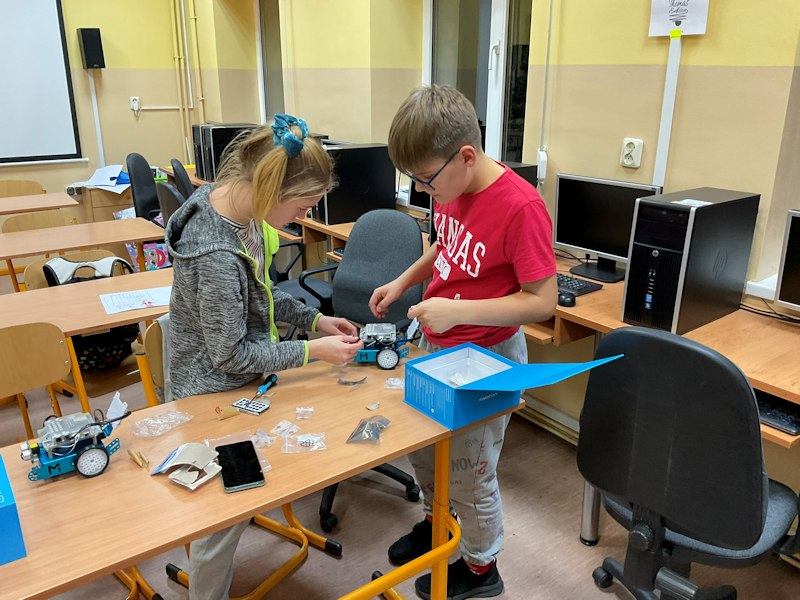 Na zajęciach z programowanie i robotyki rządzą oczywiście roboty, a dokładnie Mbot-y. Już prawie gotowe. Pierwsze komendy i pierwsze odczyty danych z czujników już zrobione. Wkrótce ruszamy w pierwsze poważne programy.