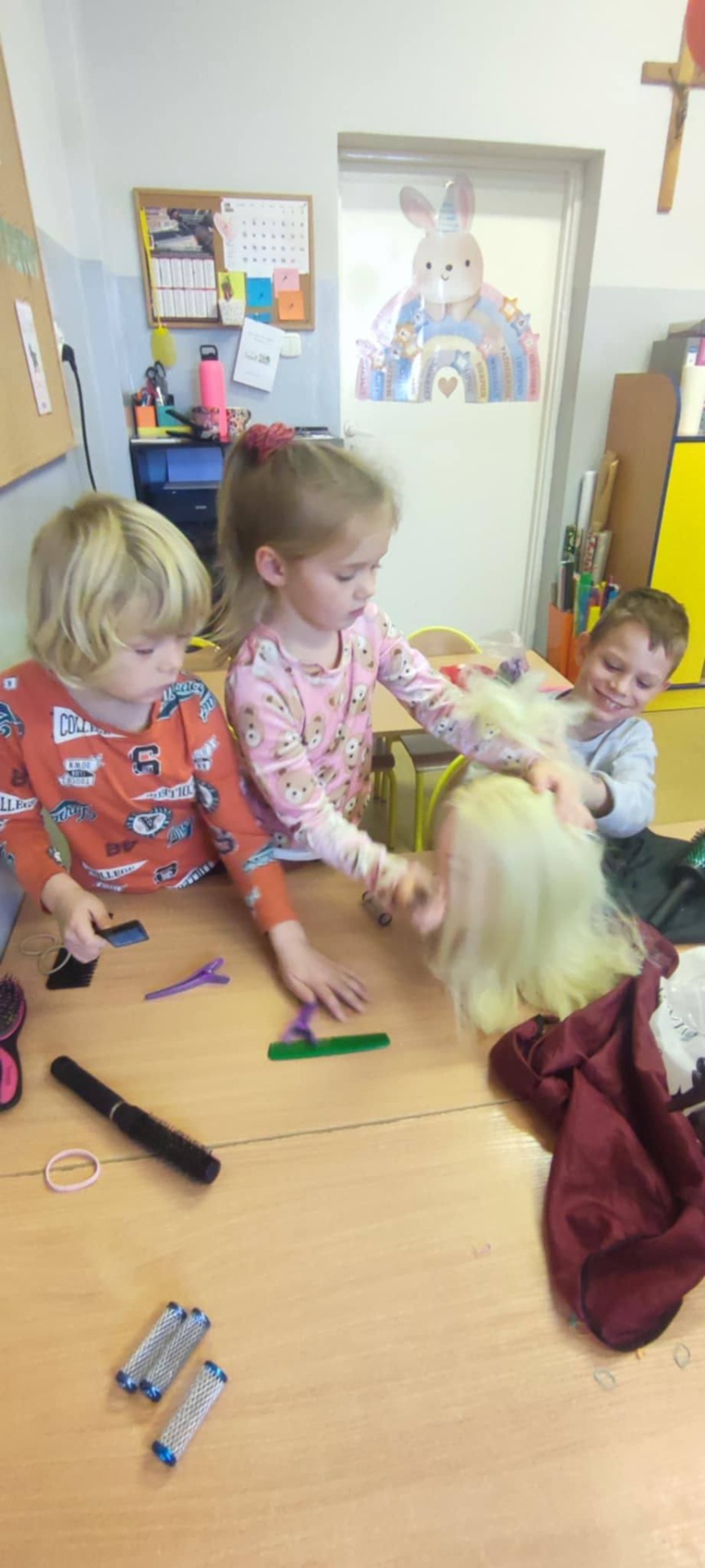 Przedszkolaki poznały dziś tajniki zawodu fryzjera/fryzjerki 💇‍♂️💇‍♀️ zarówno w teorii jak i w praktyce 😊 pomogła nam w tym p. Magda, mama jednej z naszych uczennic 🥰