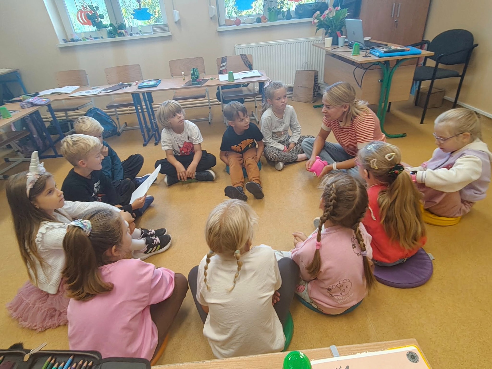 W ramach programu "Moja przyszła praca zawodowa" uczniowie klasy Ib postanowili zaprosić do siebie panią Aleksandrę, która jest naszym psychologiem szkolnym. Dzieci przygotowały się do "wywiadu". Zadawały wiele pytań, z zaciekawieniem słuchały ciekawostek na temat pracy psychologa. Dziękujemy pani Oli za odwiedziny ![]()