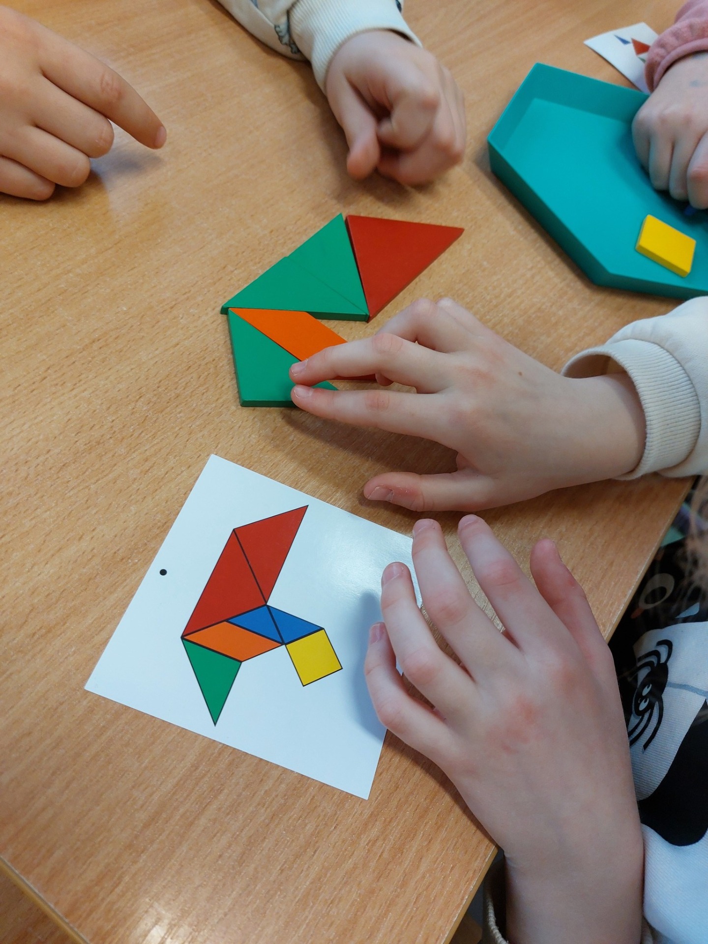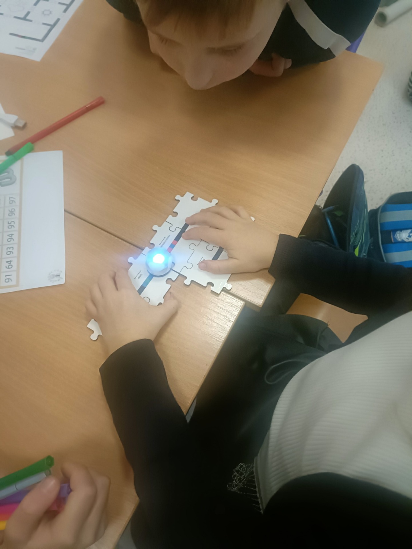 Projekt "Matematyczna przygoda" obejmuje szereg różnorodnych aktywności matematycznych, w których udział biorą uczniowie klasy 2 i 3. Ostatnio mieli okazję poznać tradycyjne łamigłówki na przykładzie tangramu, ale także współczesne rozwiązania cyfrowe wykorzystując kodowanienie i programowanie podczas pracy z ozobotami.