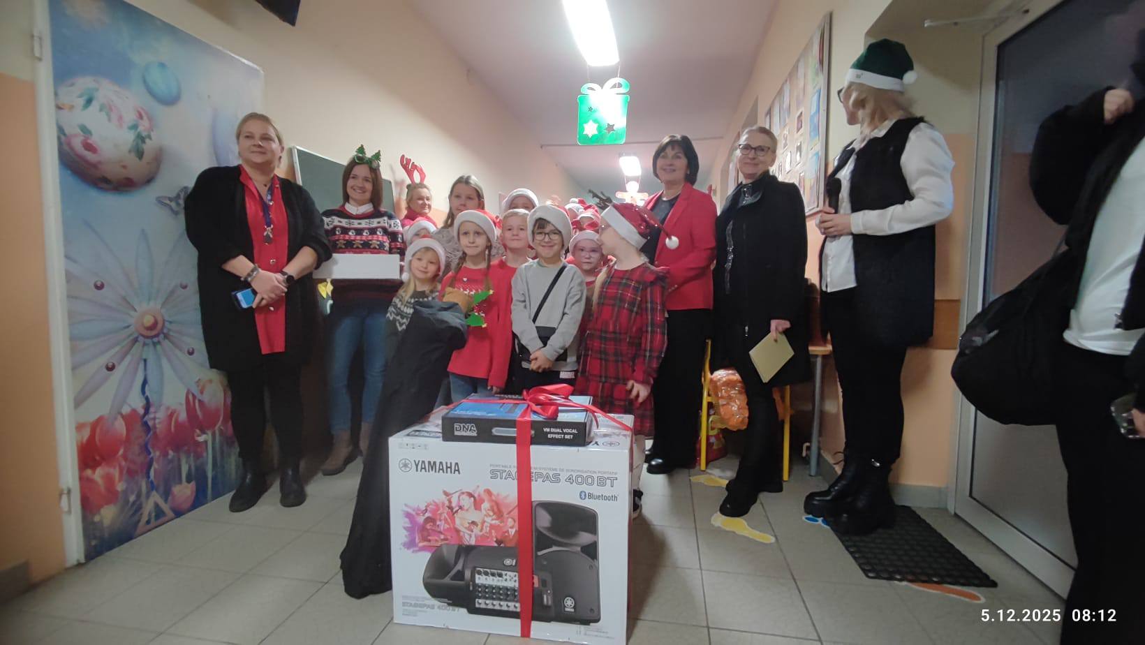 Podczas wizyty Panie przekazały naszej szkole profesjonalny sprzęt nagłośnieniowy firmy Yamaha, który będzie służył do nagłaśniania szkolnych wydarzeń i uroczystości.