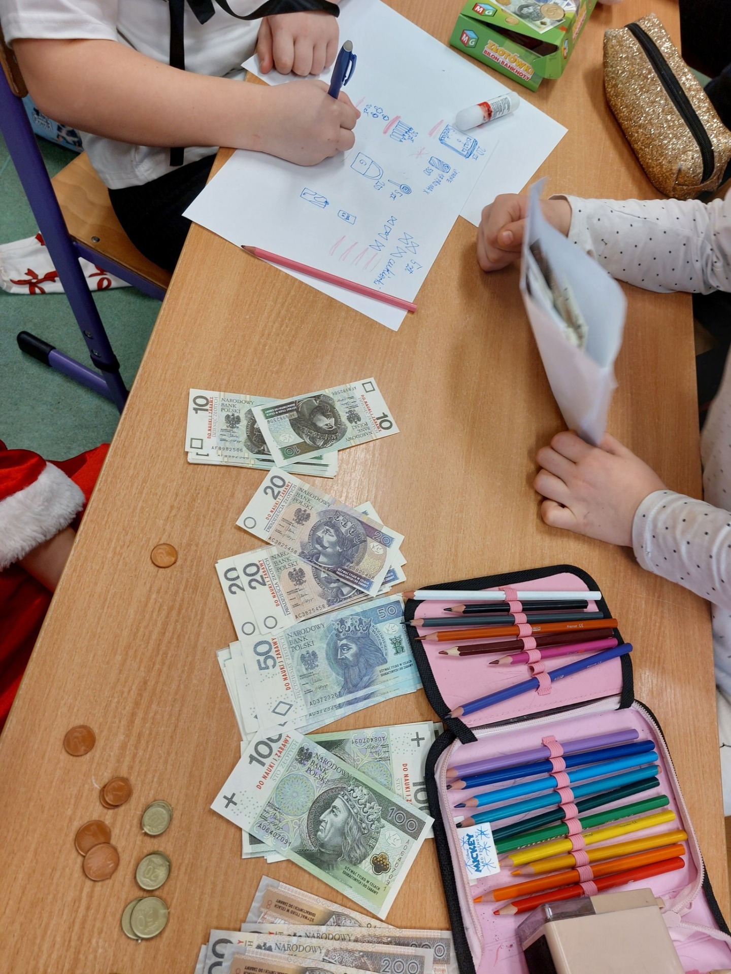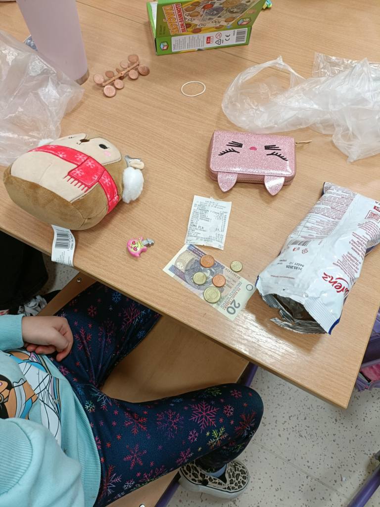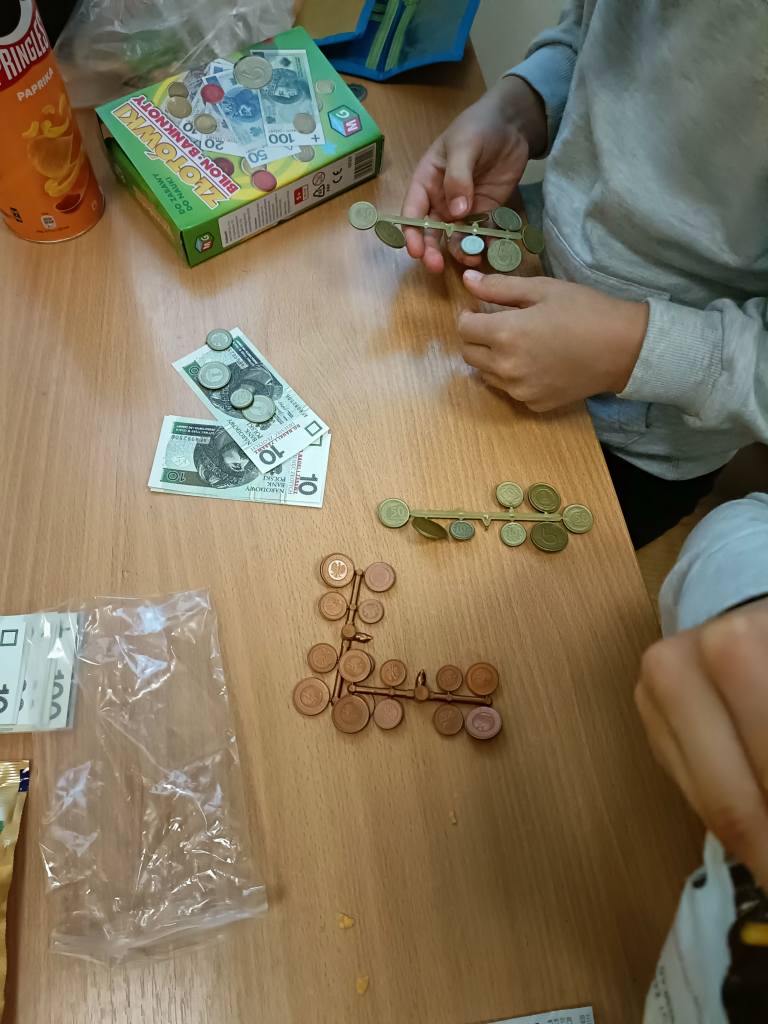 "Matematyczna przygoda" to działania, które "odczarowują" matematykę. Uczniowie klasy 2 i 3 poznają jej praktyczne zastosowanie w codziennym życiu. Dobrym przykładem jest nauka gospodarowania pieniędzmi. Najpierw dzieci zapoznały się z polskimi monetami i banknotami, aby podczas zakupów w pobliskim sklepie zweryfikować swoje umiejętności szybkich obliczeń. Przyjemne z pożytecznym